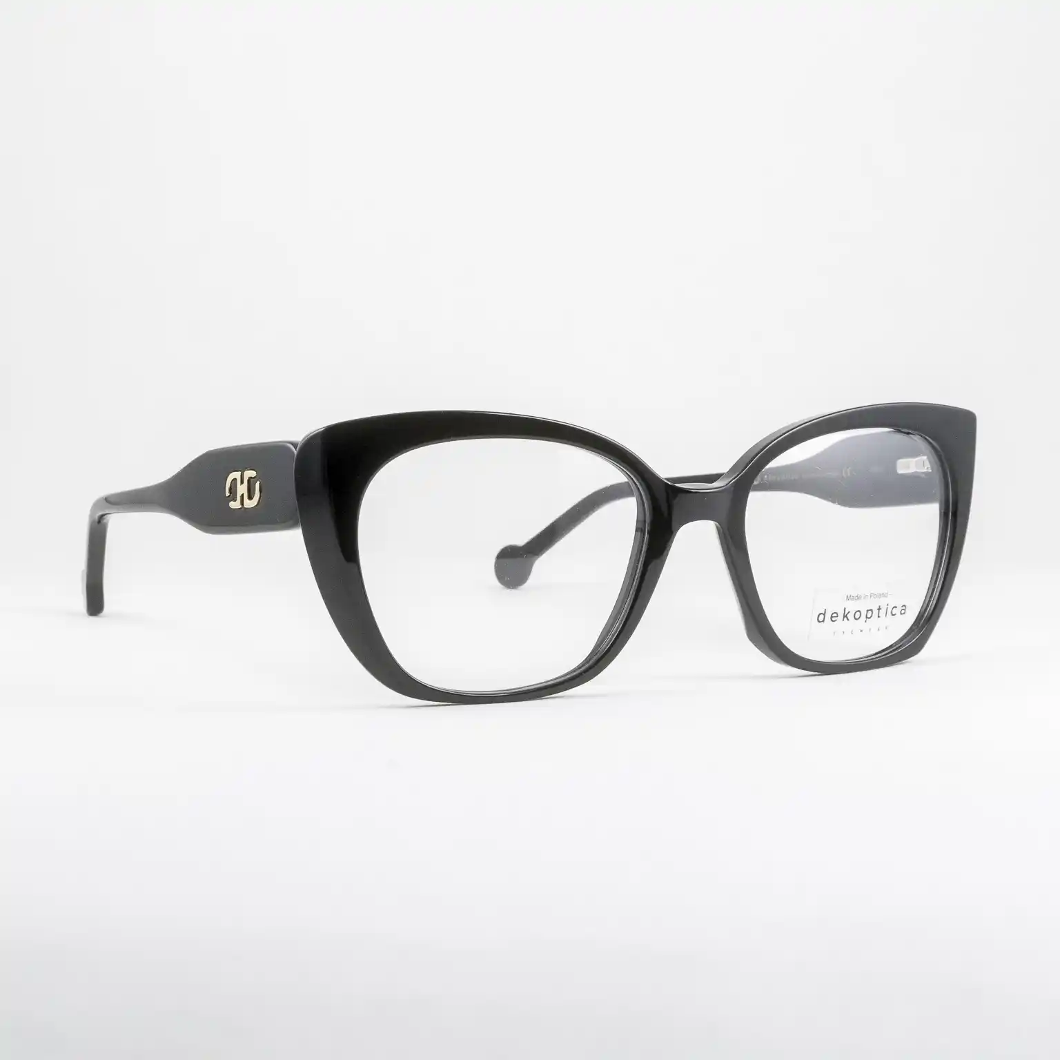 Wykonane z tworzywa oprawki damskie, od polskiego producenta Dekoptica. Tarcze w kształcie kociego oka, ścięte od dołu. Gruba oprawa, szerokie zauszniki, staranne frezowanie. Logo marki przy zawiasach w kolorze złotym. Zawiasy typu flex sprzyjają komfortowi użytkowania.