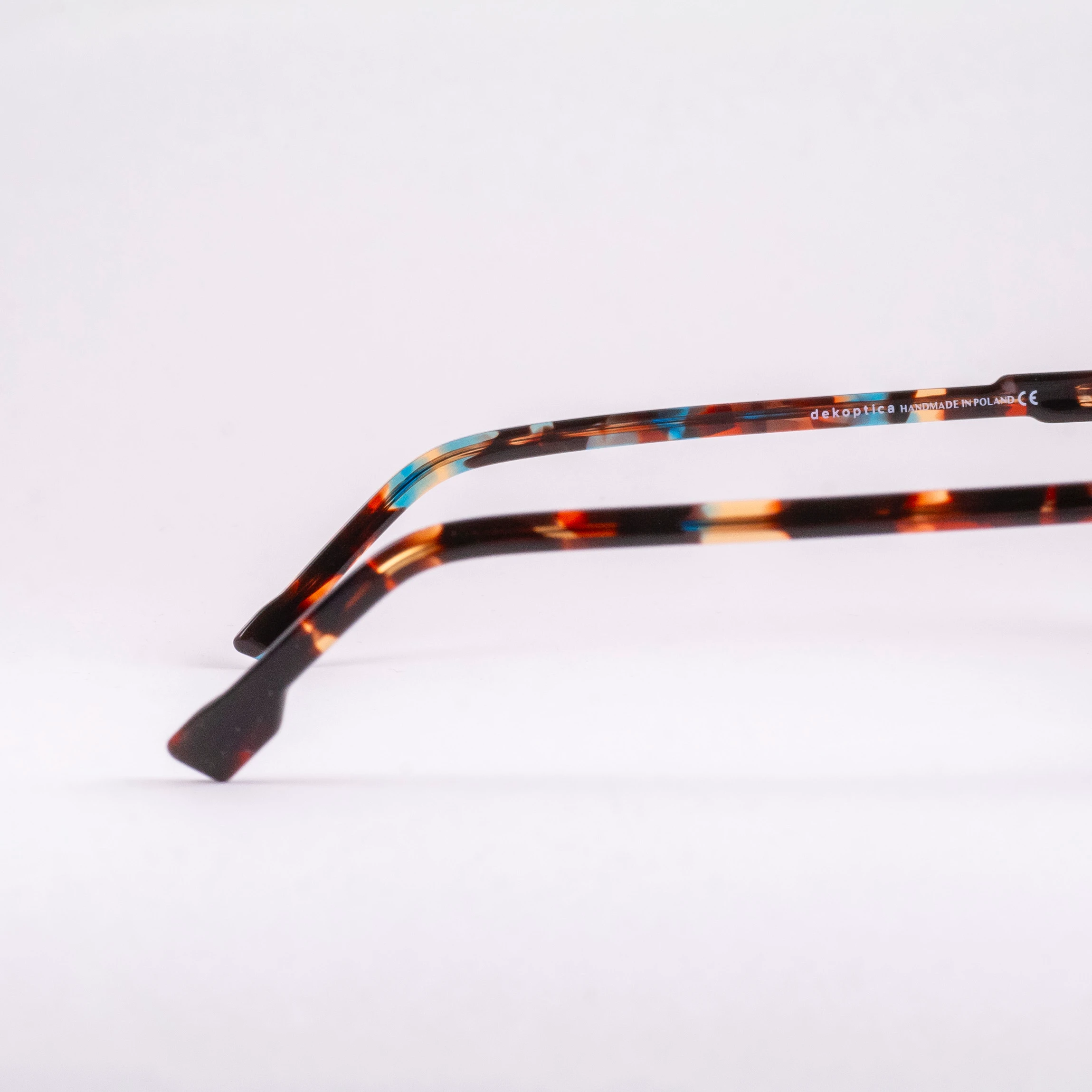 Wyjątkowe oprawki dla wyrazistych Osobowości. Forma kociego oka podkreślona niebanalnym, kanciastym frezowaniem. Przez brązowy szylkret, miejscami przebija się chłodny błękit – subtelne kontrasty dodają świeżości.