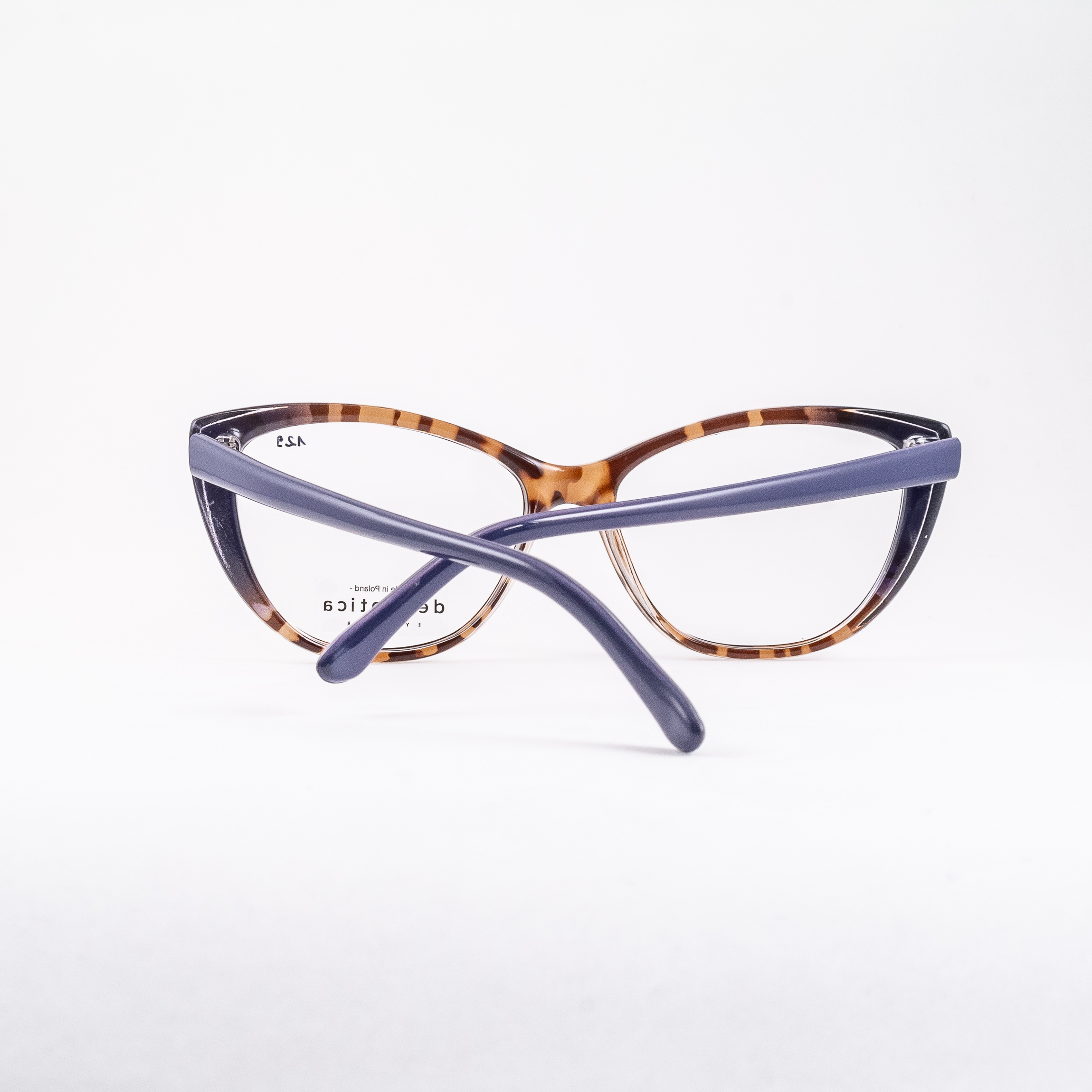 Kobiecy kształt w kolorowej odsłonie – brązowy szylkret przełamany kolorem niebieskim orzeźwia i energetyzuje.