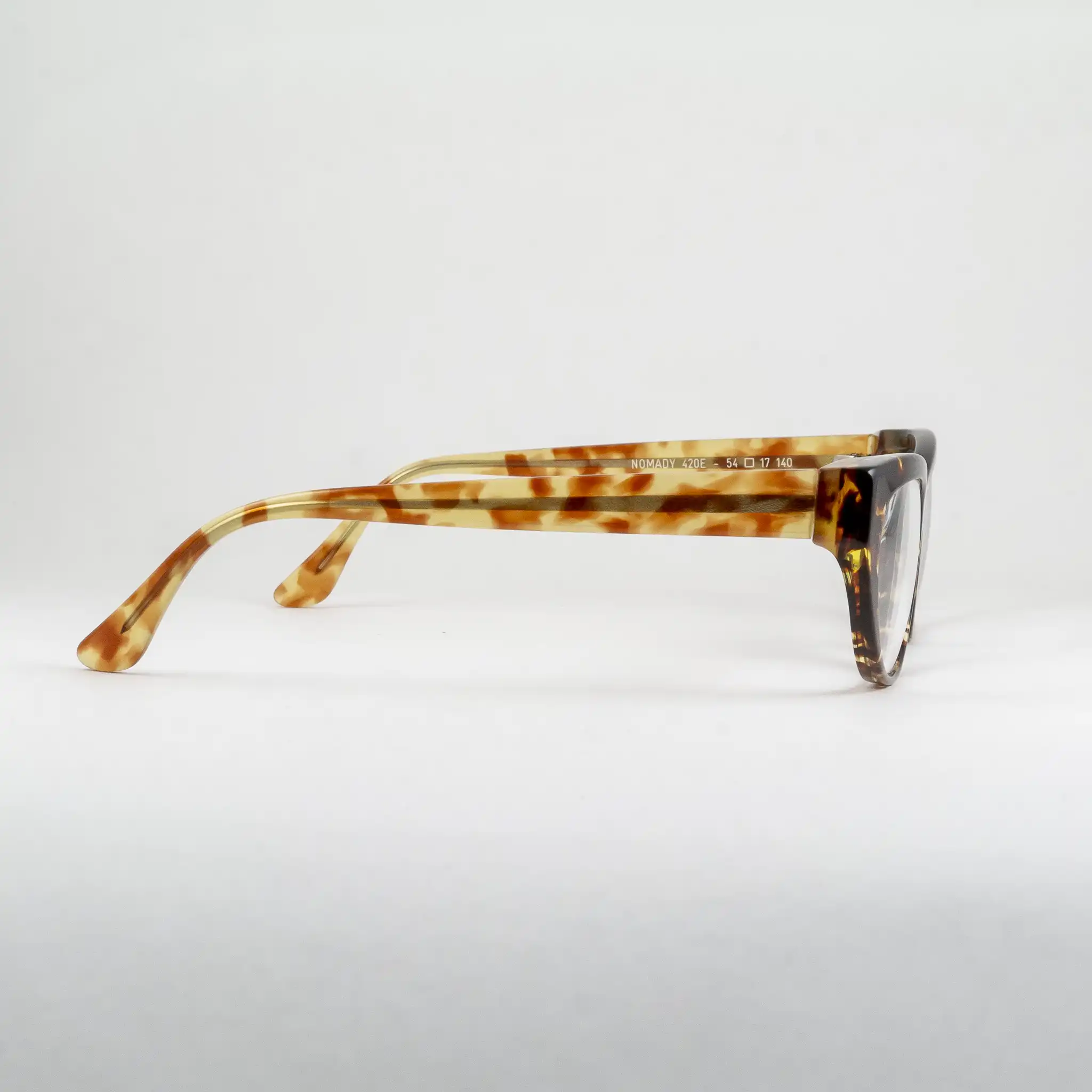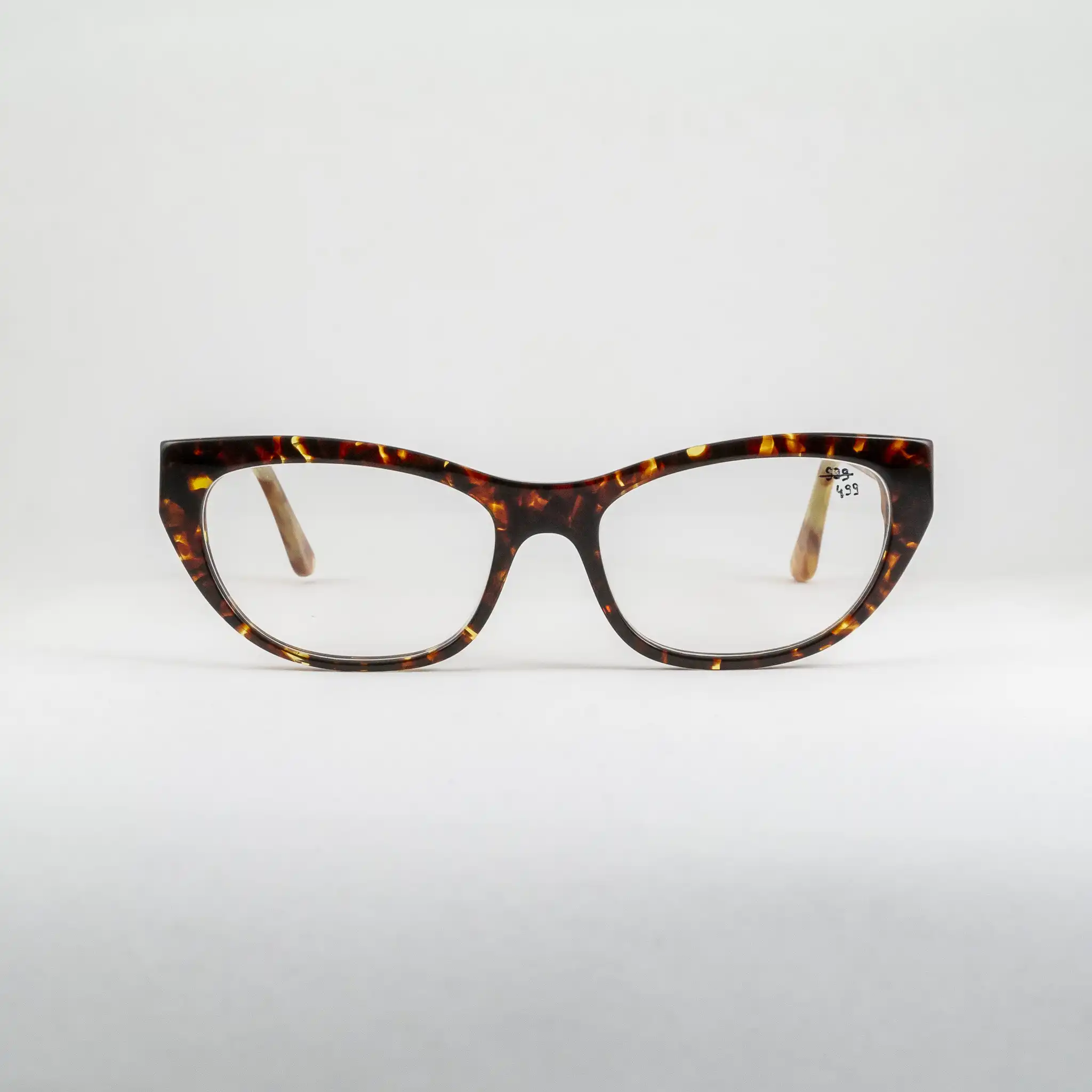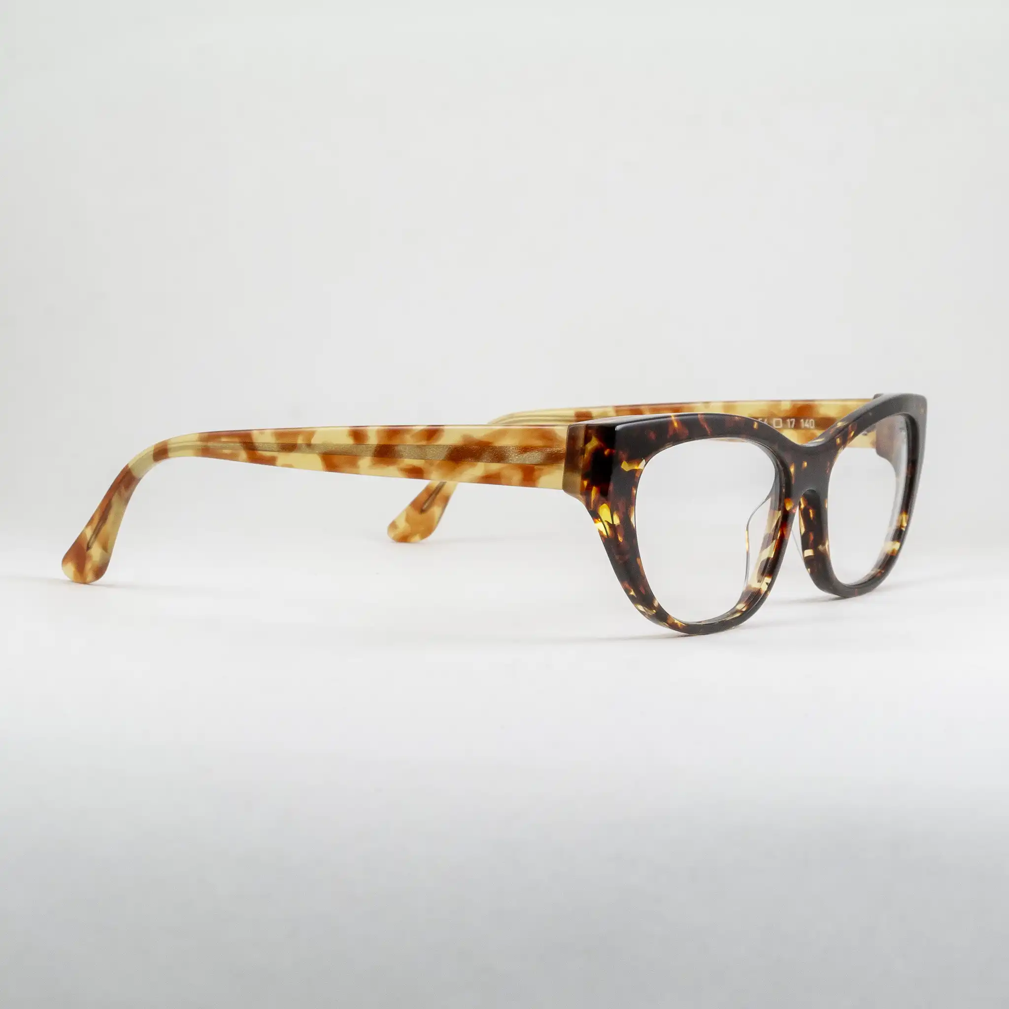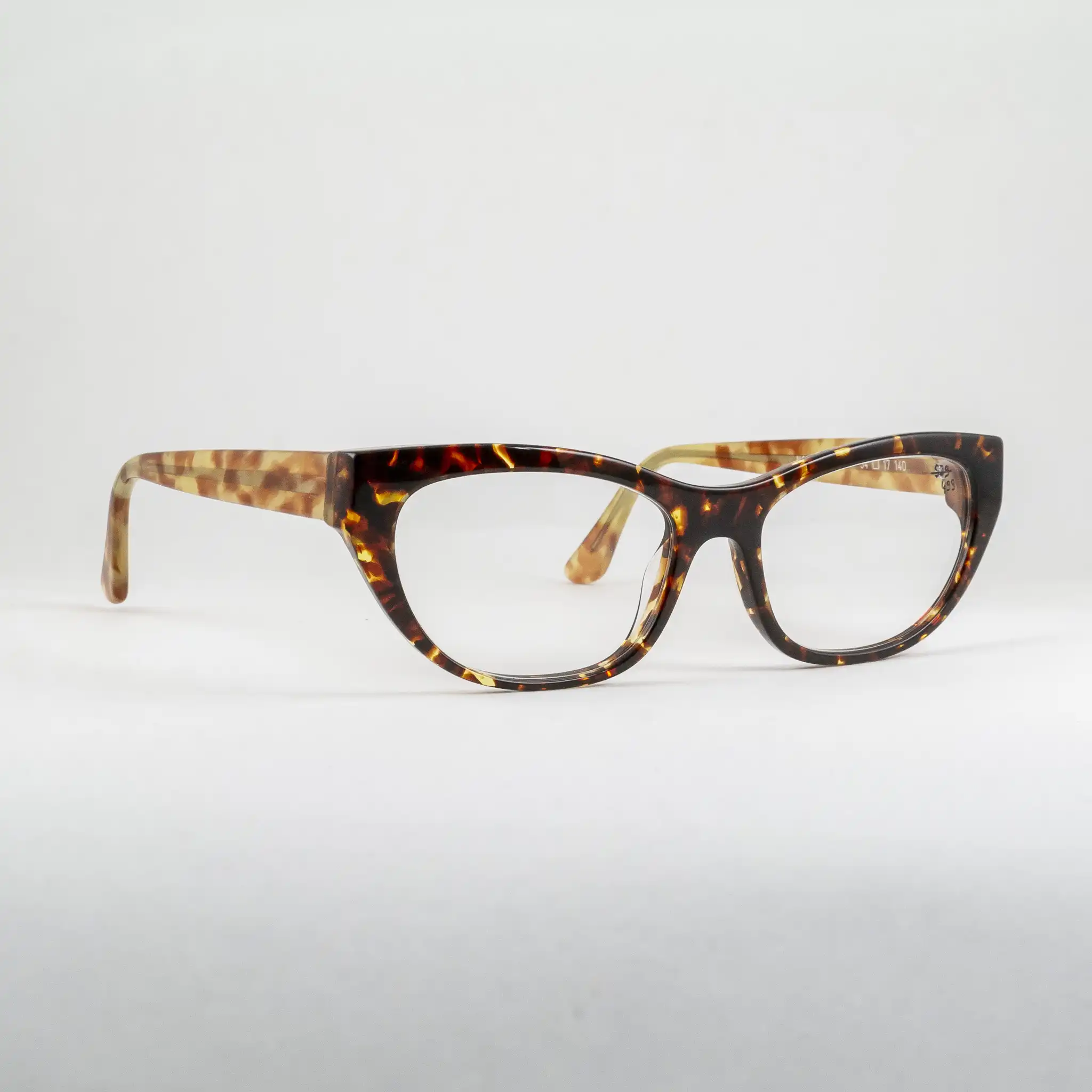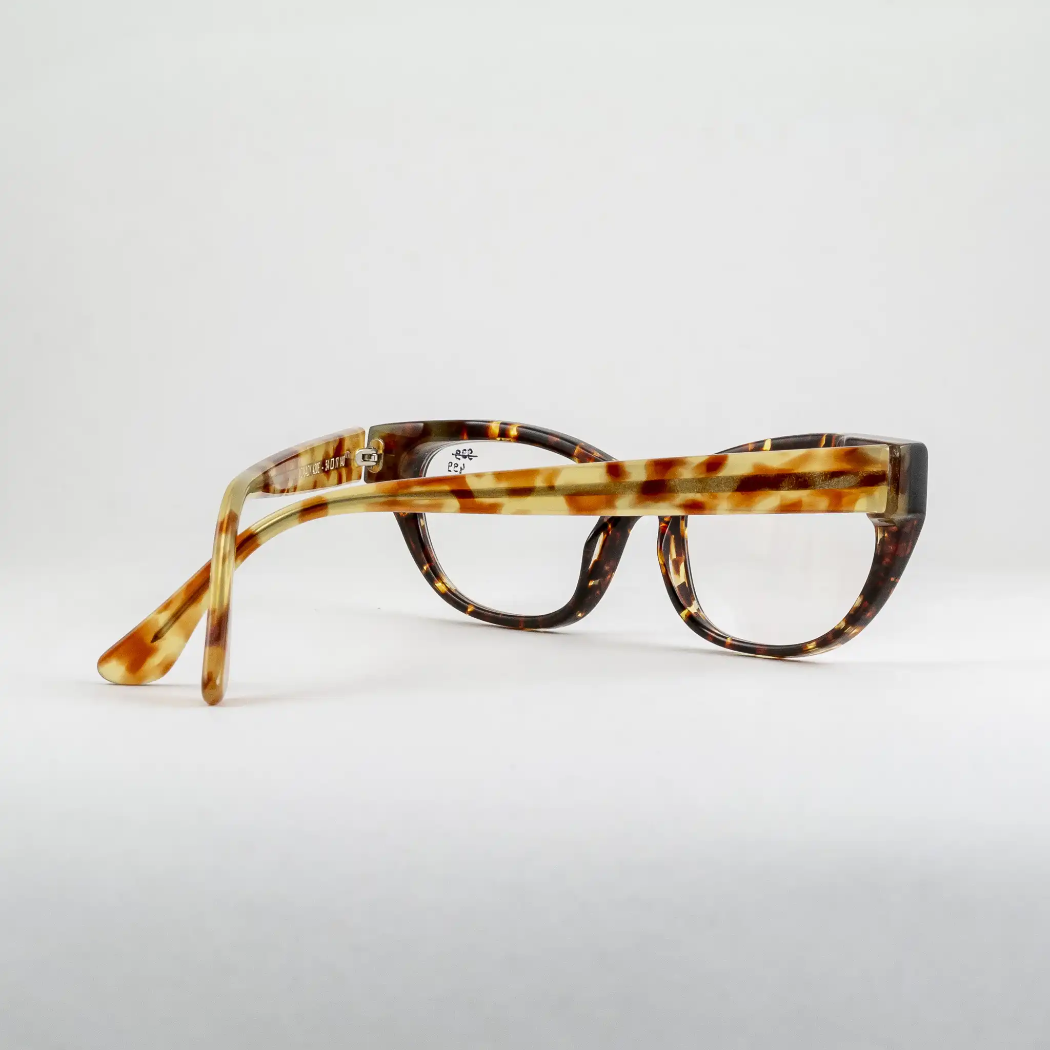 Oprawki damskie marki Harry Lary’s, ręcznie wykonane we Francji. Tarcze w kocim kształcie, front w klasycznym szylkrecie, zauszniki w jaśniejszej wersji. Dopracowany frez, wyraźnie widoczna i wyczuwalna wysoka jakość wykonania.