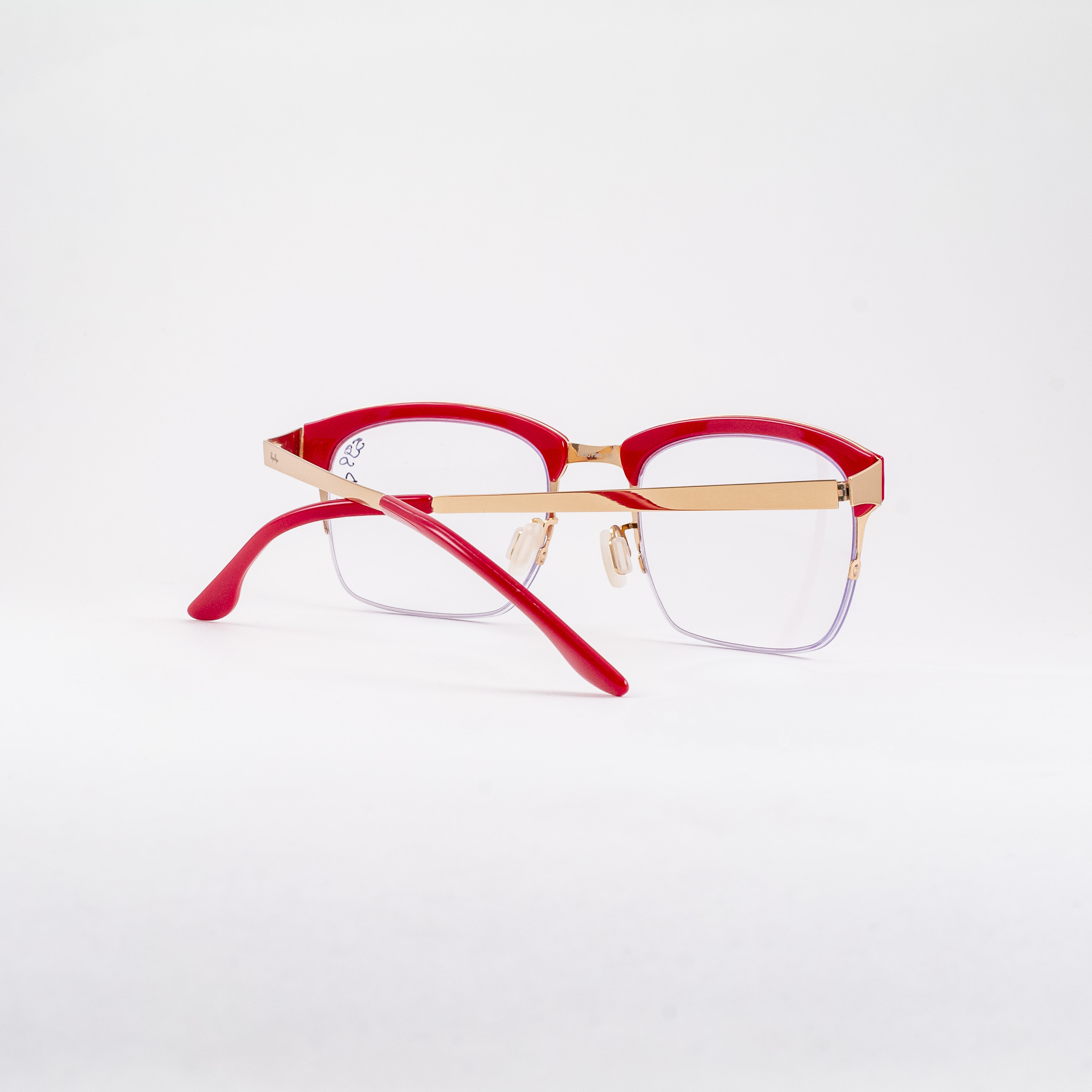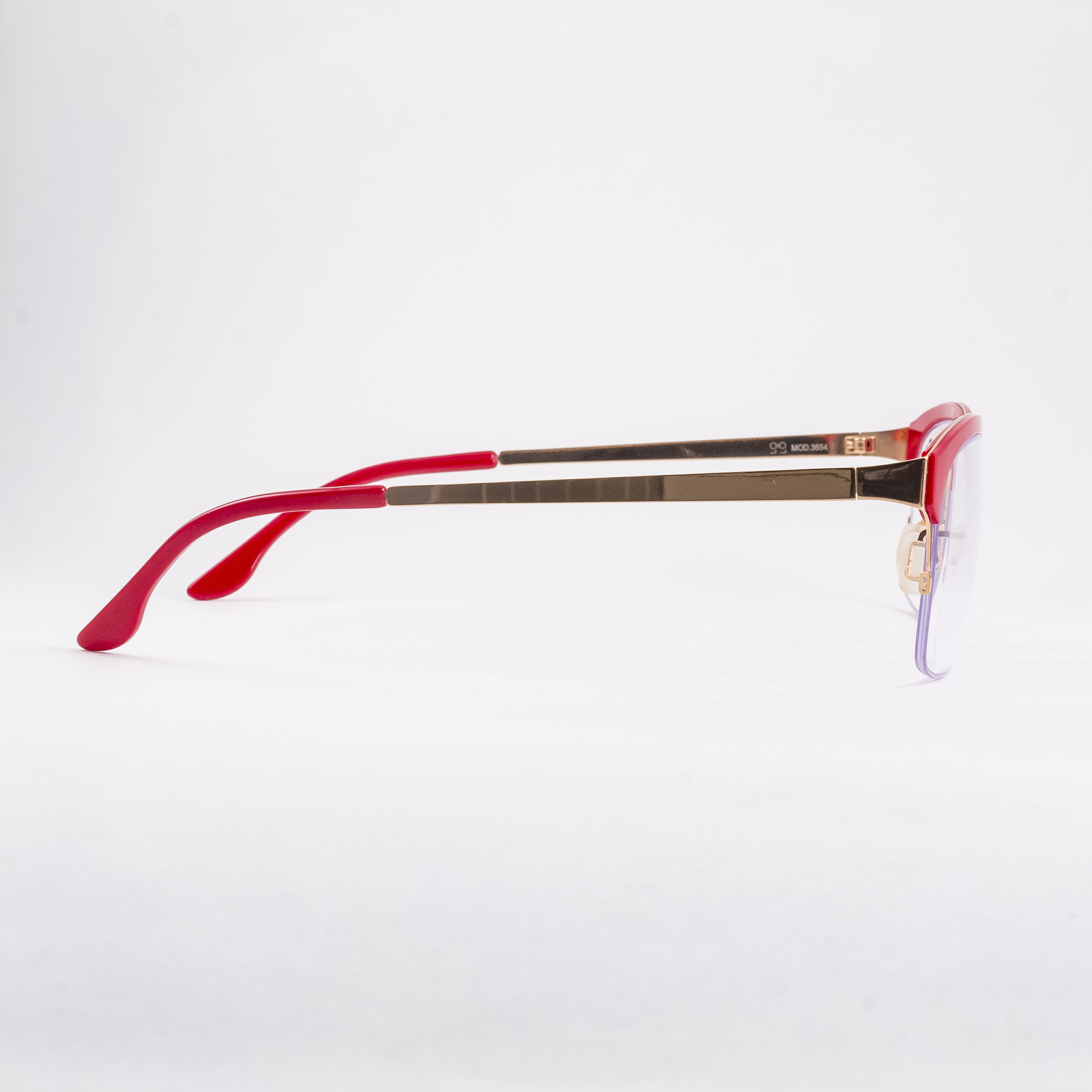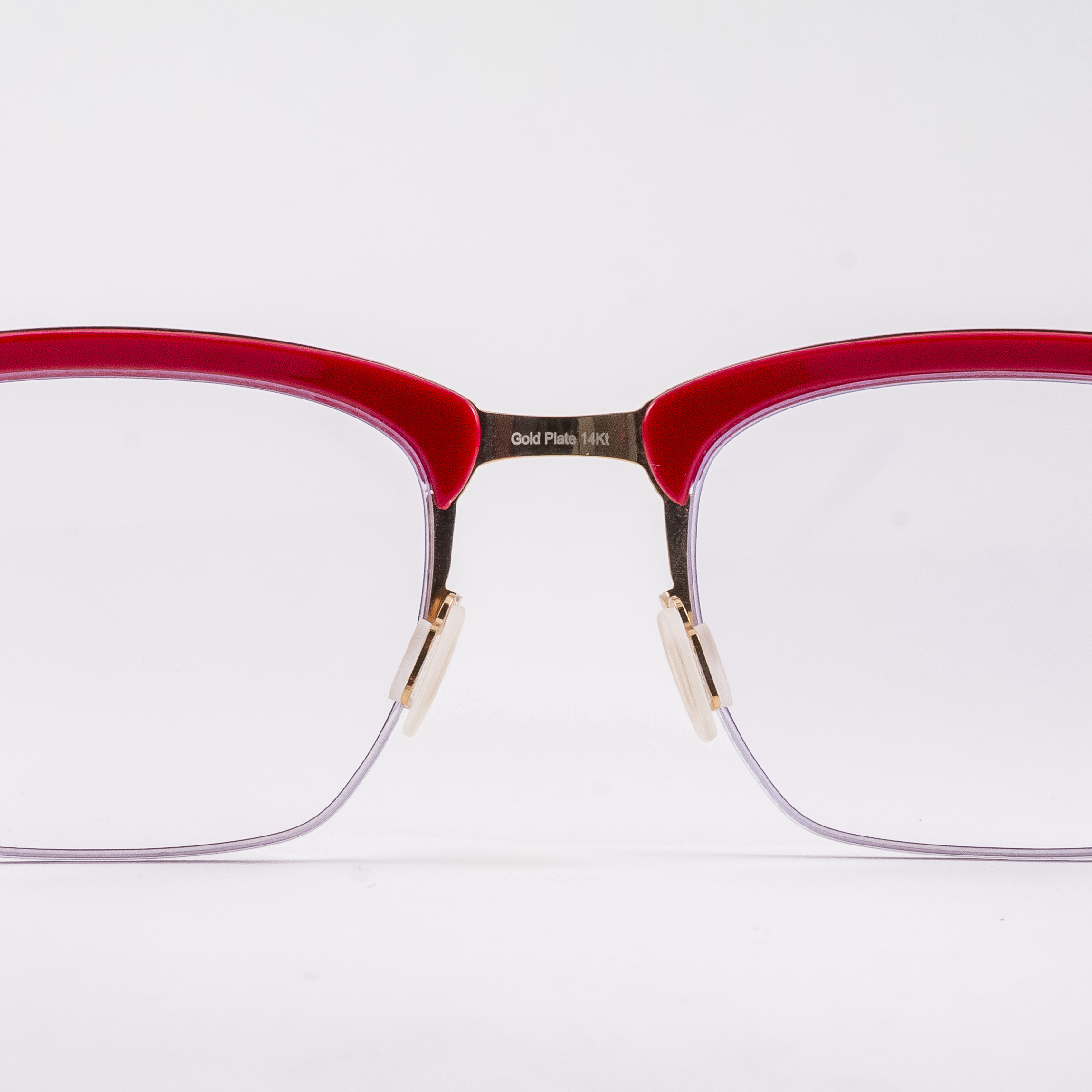 Ponadczasowy kształt, eleganckie kolory, wdzięczna forma. Montaż na żyłkę wraz ze złotymi akcentami dodaje wizualnej lekkości i rozjaśnia twarz. Żywa barwa malinowa energetyzuje.