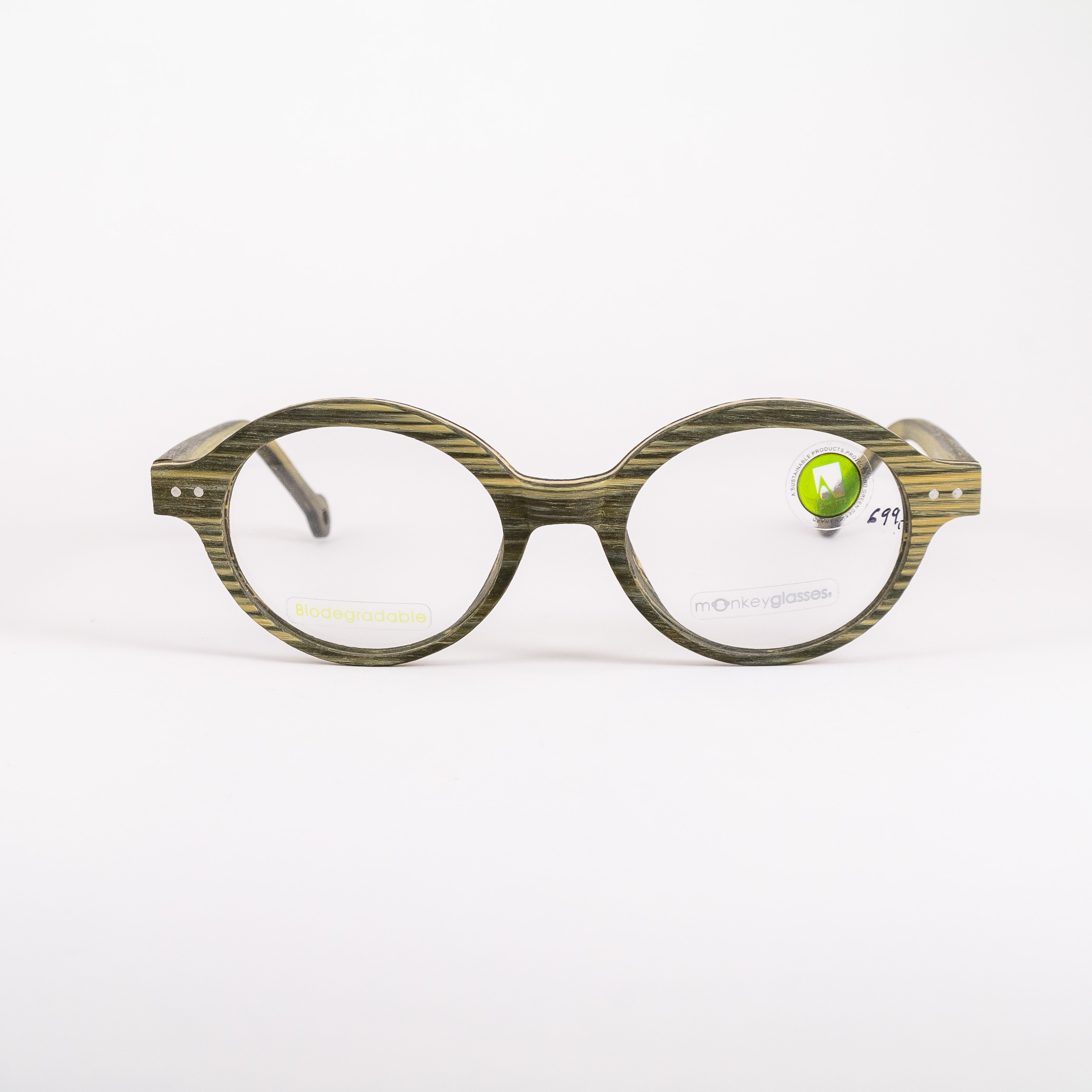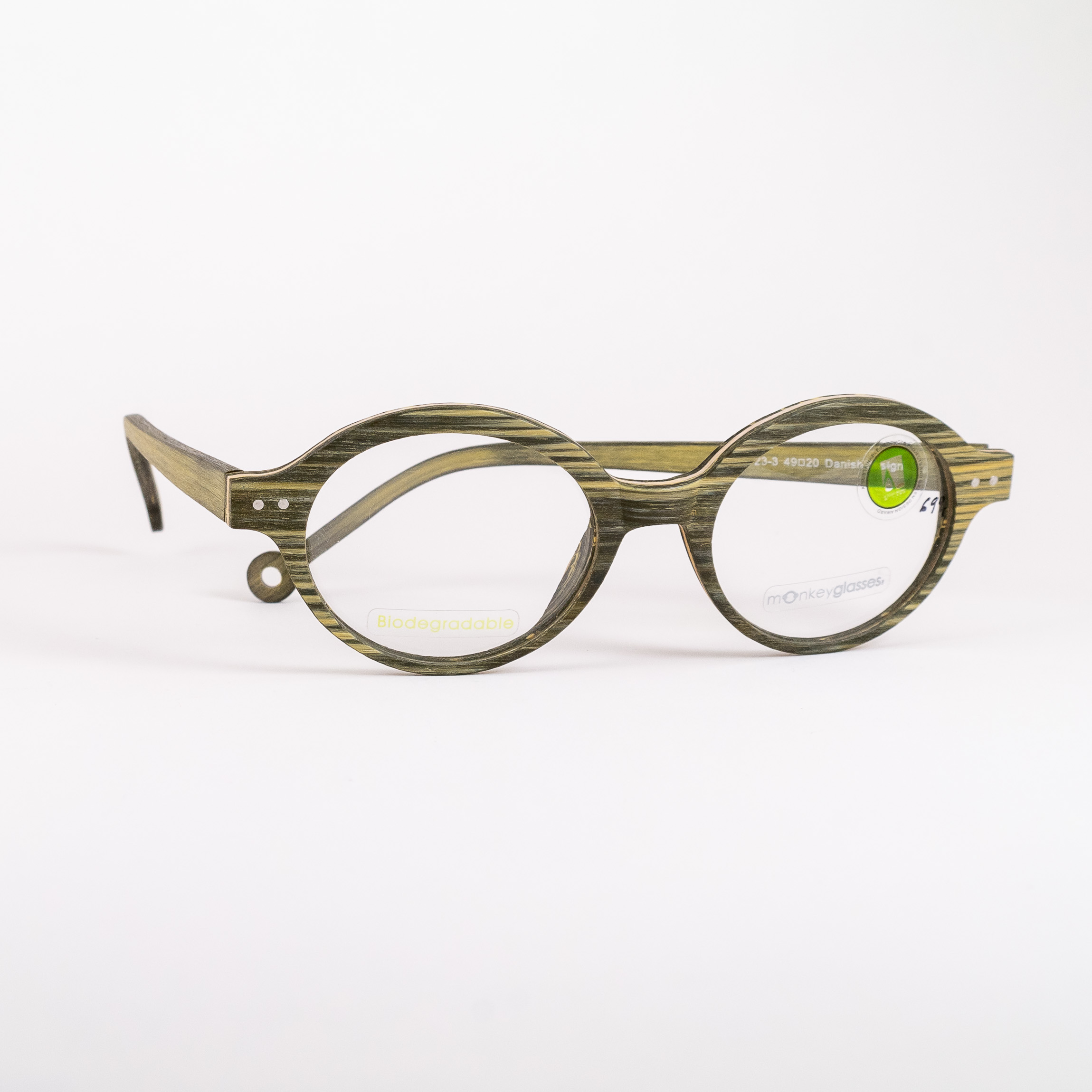 Oprawki do okularów duńskiej marki Monkeyglasses wykonane w większości z tworzywa z recyklingu i wyprodukowane w duchu mody zrównoważonej – materiał biodegradowalny.