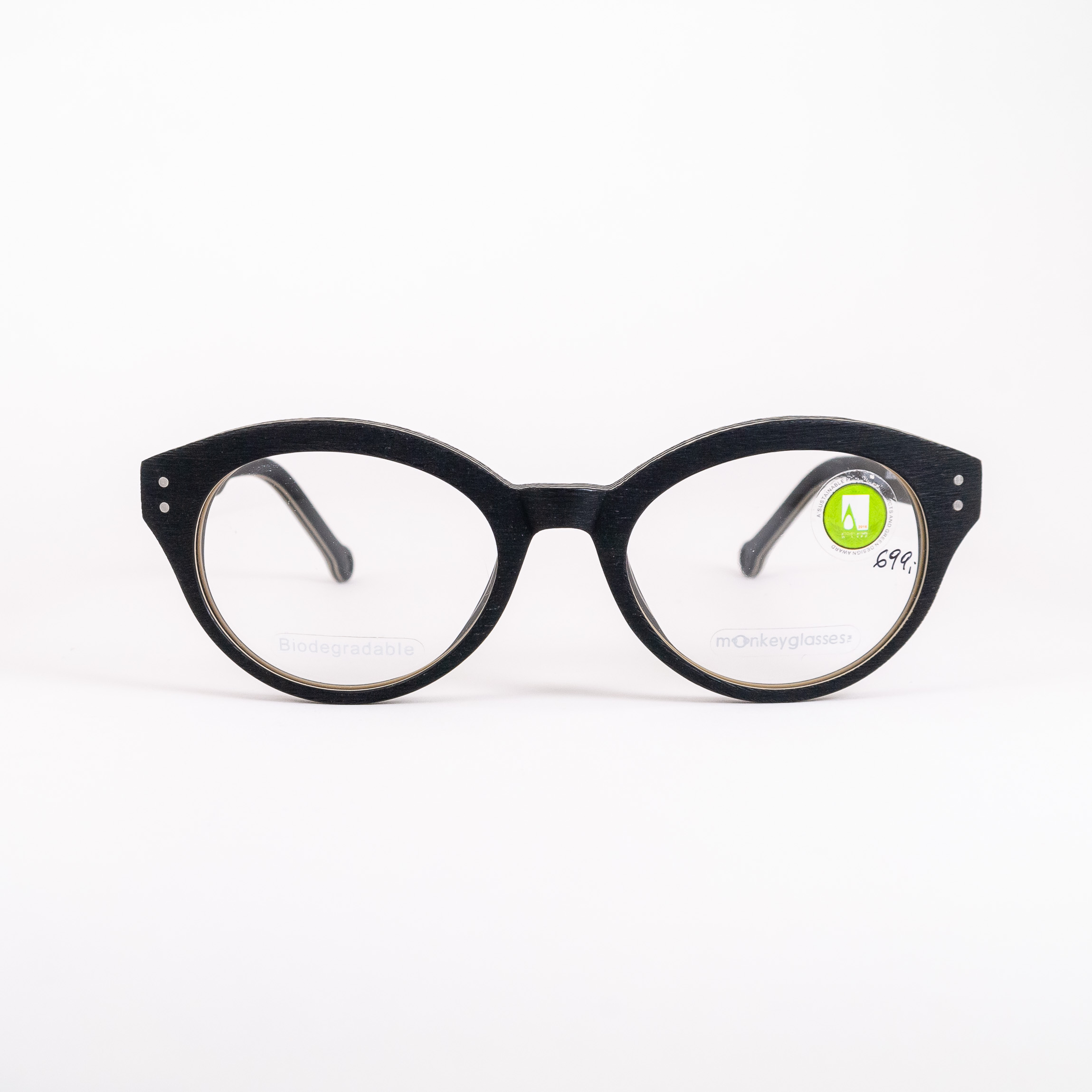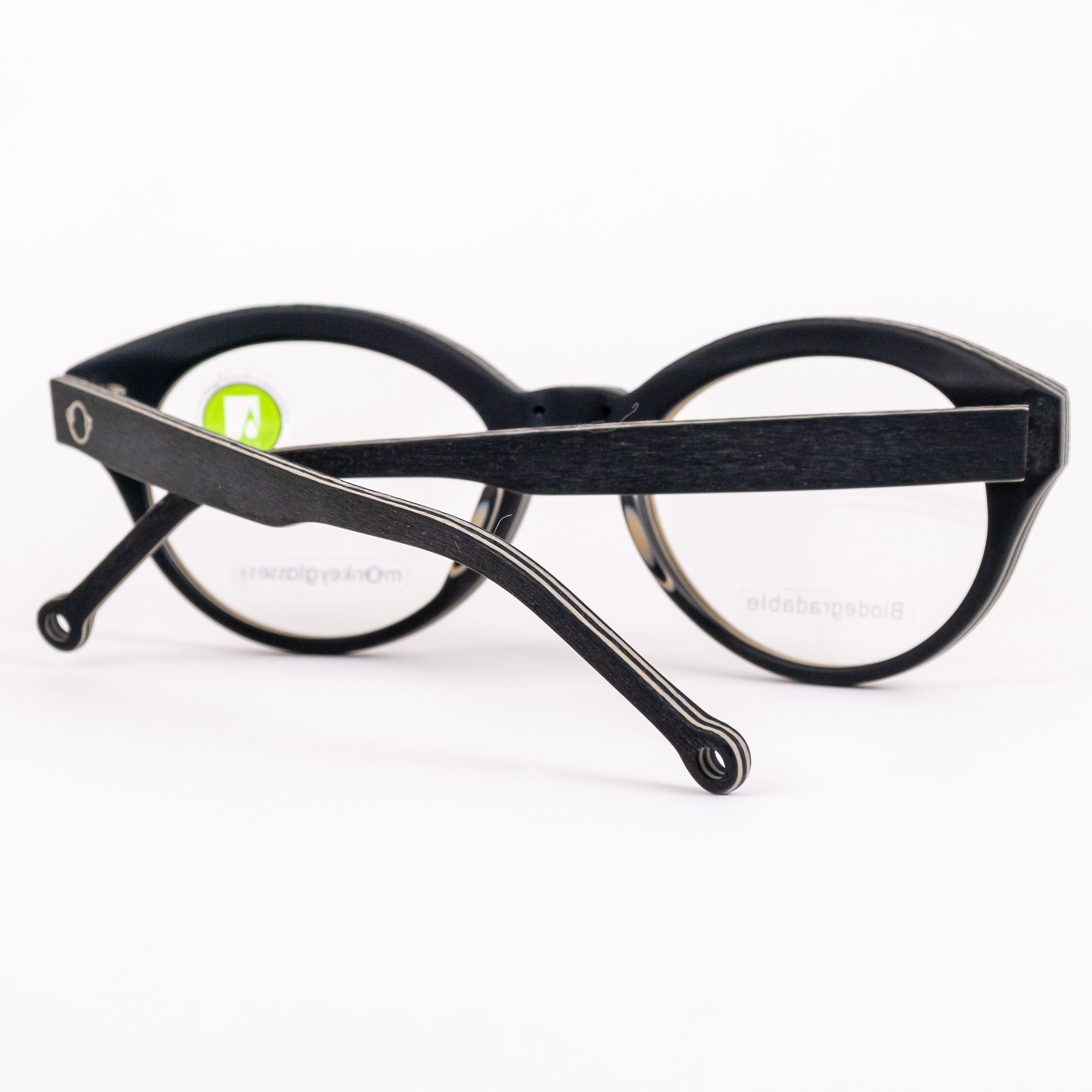 Oprawki okularowe duńskiej marki Monkeyglasses wykonane w większości z tworzywa z recyklingu i wyprodukowane w duchu mody zrównoważonej – materiał biodegradowalny.