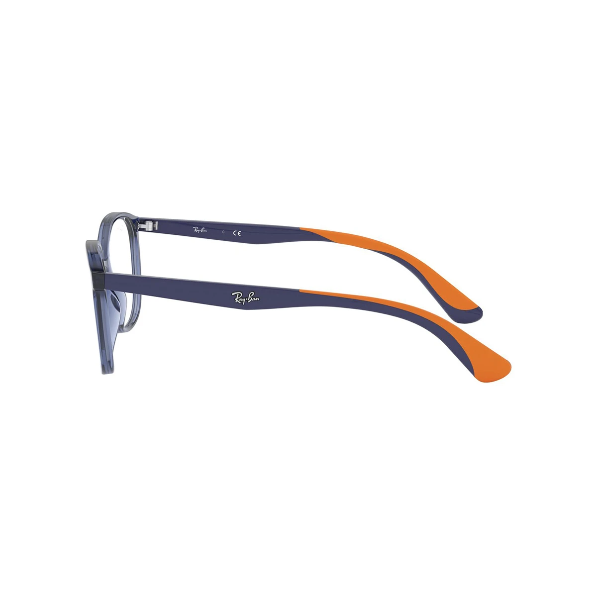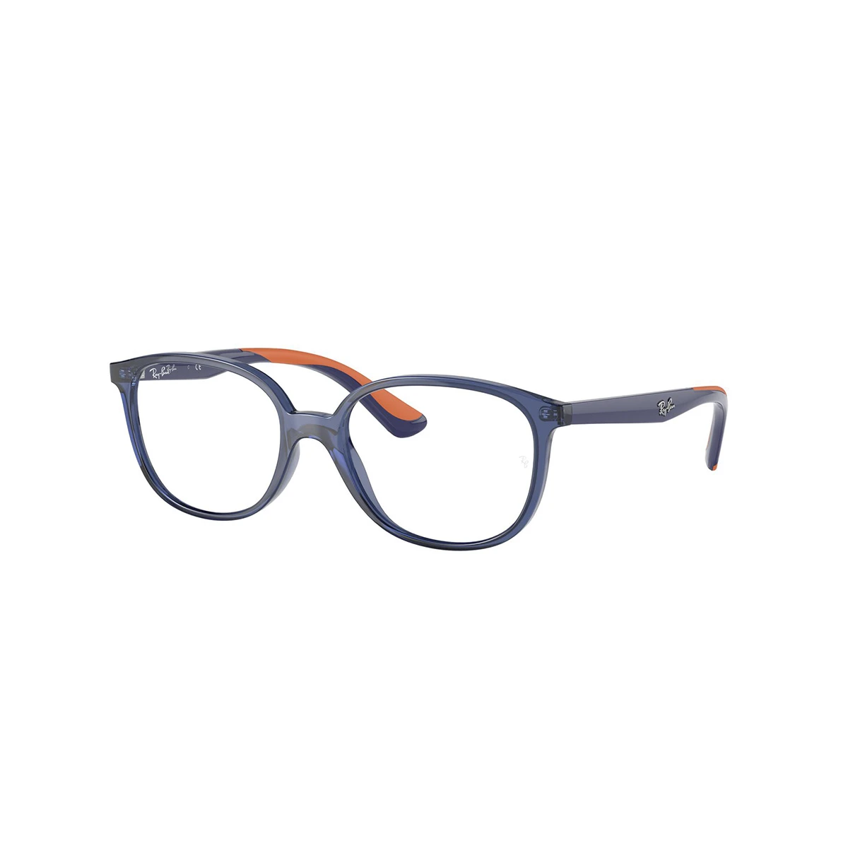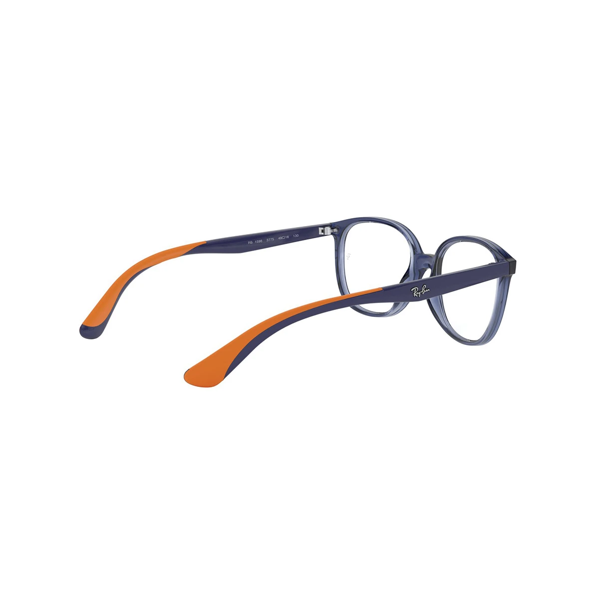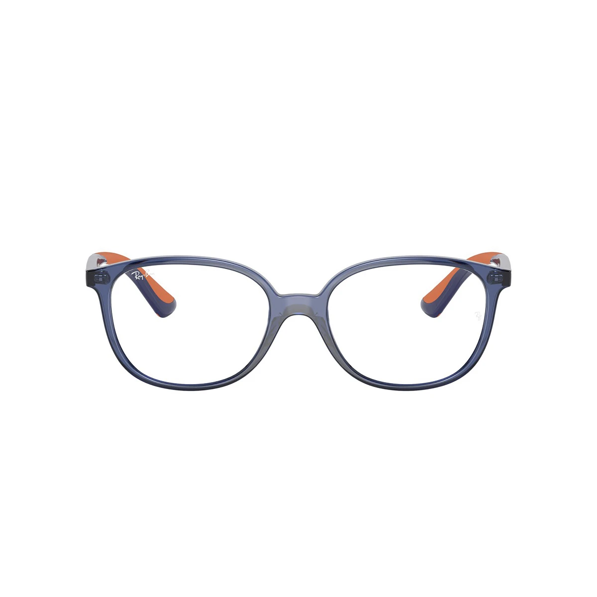 Oprawka dedykowana dla młodych użytkowników od marki Ray Ban. Front w semi-transparentnym kolorze granatowym (w rzeczywistości mniej szary niż na zdjęciach :), owalne tarcze. Zauszniki niebiesko-pomarańczowe. Obniżony mostek wspomaga prawidłową centrację oka – u dzieci niekiedy szczególnie wymagającą, przez drobne nasady nosa. Subtelne logo Ray Ban na zausznikach.