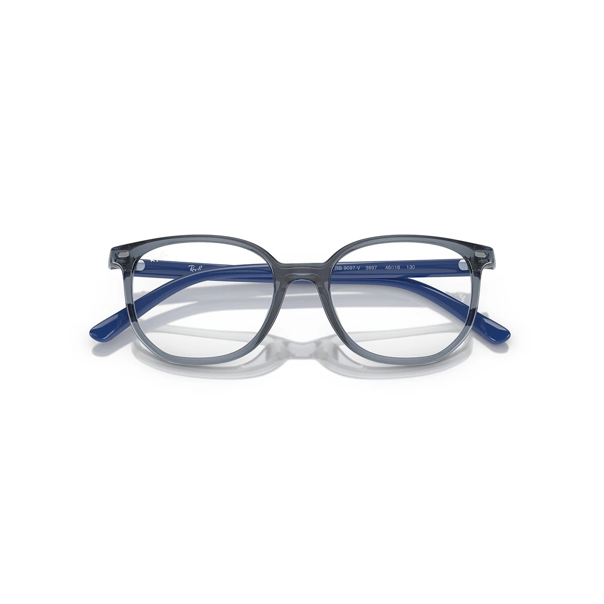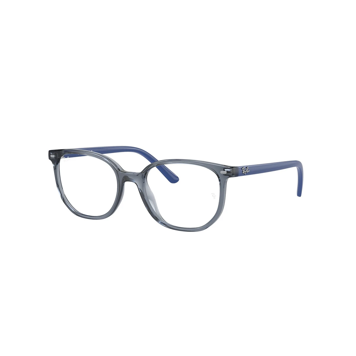 Oprawka dedykowana dla młodych użytkowników od marki Ray Ban. Front w semi-transparentnym kolorze niebieskim (na zdjęciach wygląda szaro, w rzeczywistości nie ma tyle tej szarości :), okrągłe tarcze. Zauszniki w pełni niebieskie. Lekko obniżony mostek wspomaga prawidłową centrację oka – u dzieci niekiedy szczególnie wymagającą, przez drobne nasady nosa. Subtelne logo Ray Ban na zausznikach przy zawiasach.