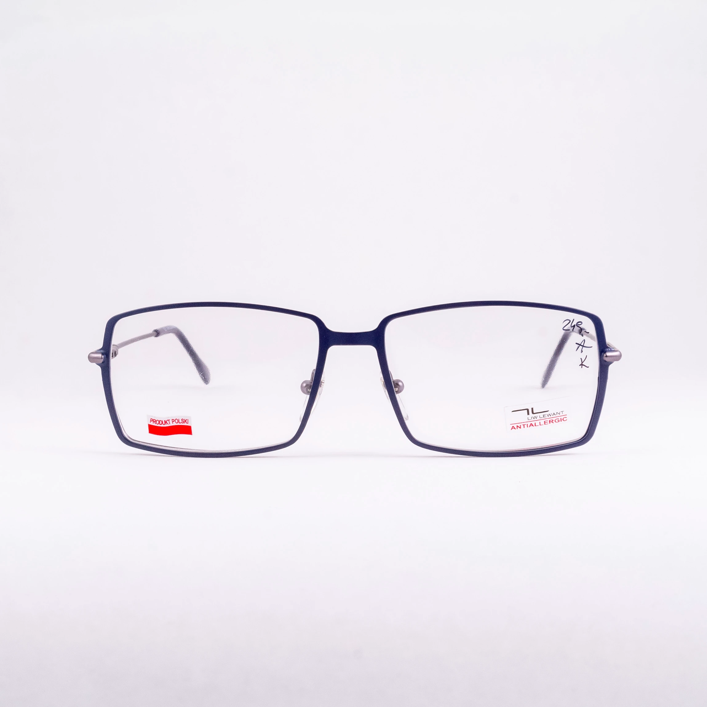 Metalowe oprawki męskie od polskiej marki opraw okularowych Liw Lewant. Prostokątne tarcze. Front i zakończenia zauszników w kolorze granatowym. Zauszniki w kolorze chłodnego srebra. Zawiasy typu flex sprzyjają komfortowi użytkowania.