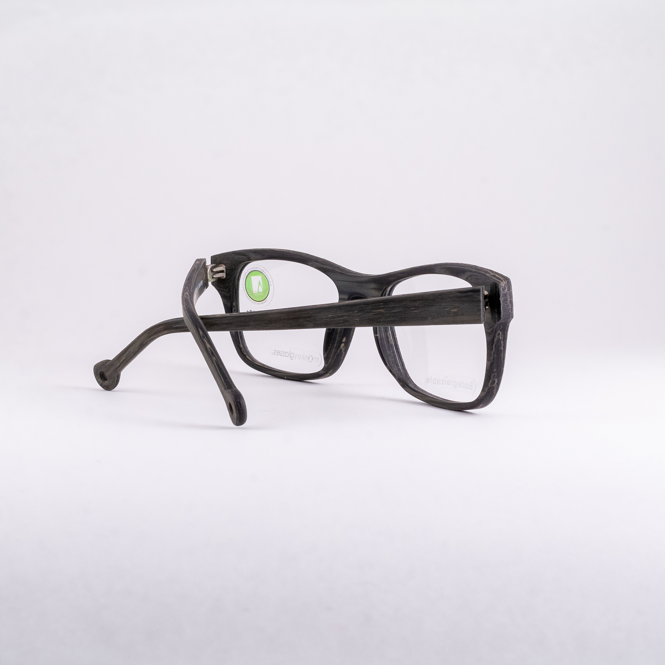 Oprawki do okularów duńskiej marki Monkeyglasses wykonane w większości z tworzywa z recyklingu i wyprodukowane w duchu mody zrównoważonej – materiał biodegradowalny.