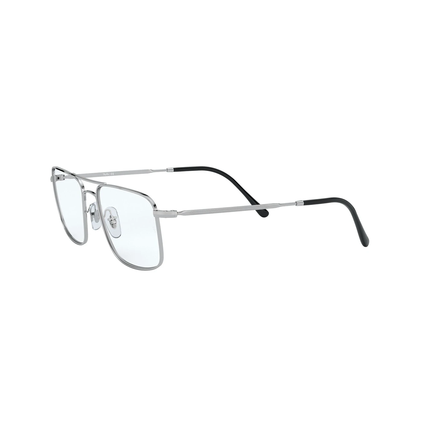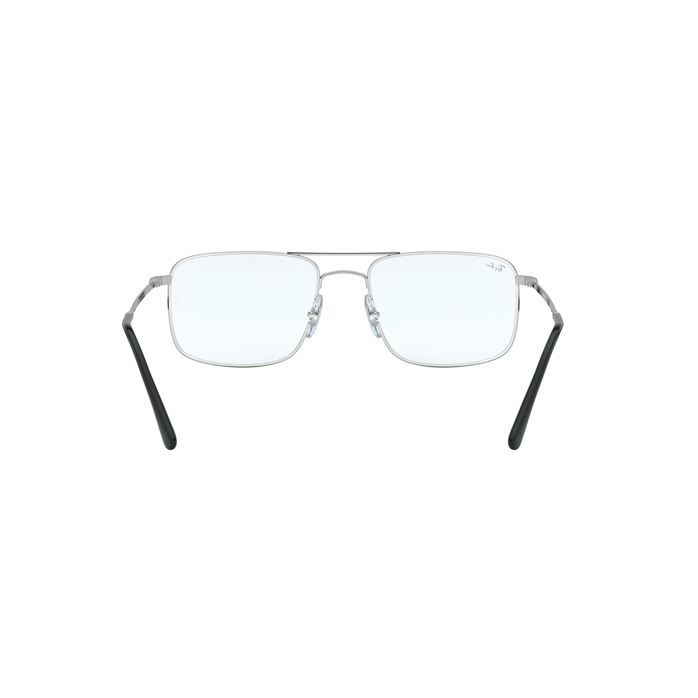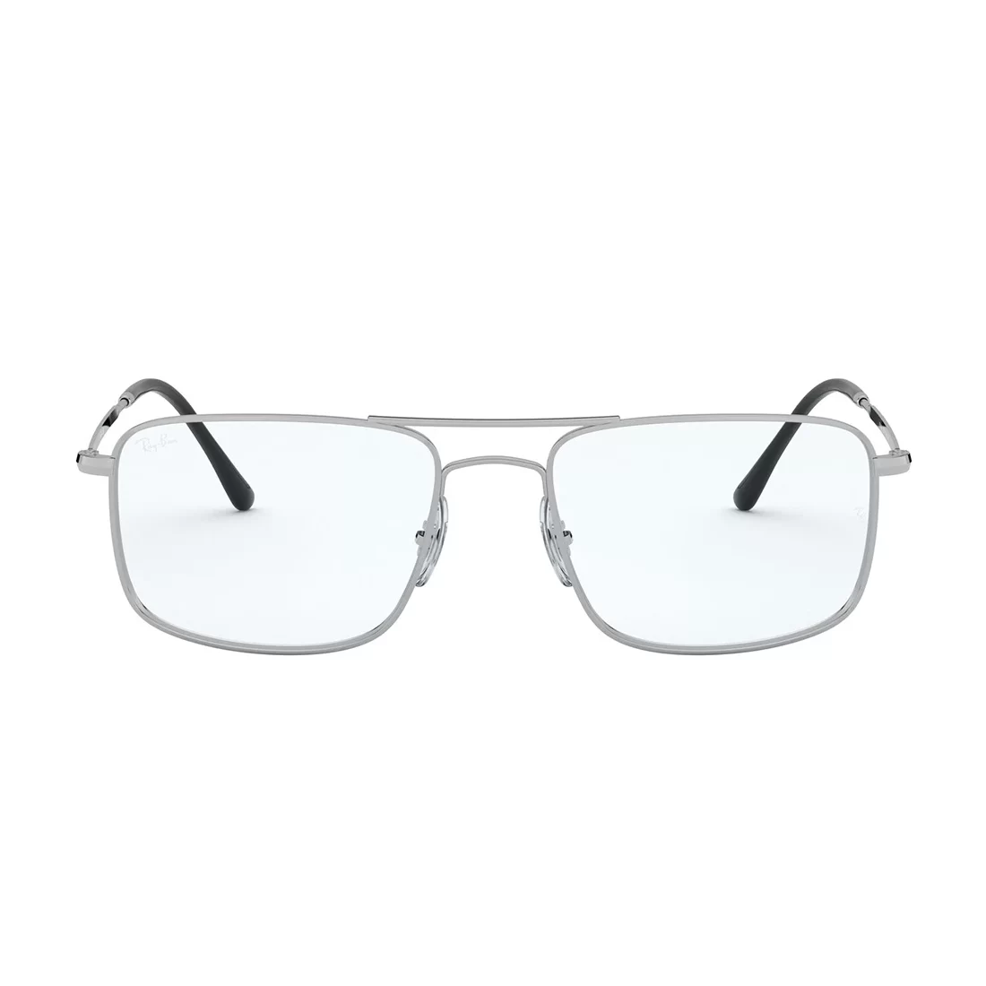 Męskie oprawki korekcyjne o wyrazistej, prostokątnej formie i minimalistycznym designie. Wykonane z lekkiego metalu, model w odcieniu chłodnego srebra. Front z podwójnym mostkiem. Tarcze szerokie, z wyraźnie zaznaczonymi krawędziami, subtelnie zaokrąglone w dolnych rogach. Noski silikonowe, regulowane – zapewniające idealne dopasowanie i wygodę noszenia. Cienkie, proste zauszniki zakończone czarnymi końcówkami, które kontrastują z całością.
